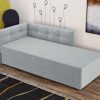 Divan / Pat tapitat Gri Deschis Story Extensibil Divan Story Extensibil Gri Deschis este o piesa de mobilier de tip pat tapitat ce nu necesita saltea. Este o optiune eleganta pentru economisirea spatiului, oferind functionalitate si confort. Este versatil si se potriveste atat in spatii mici, cat si in cele mari. Este ideal pentru camere de copii, dormitoare mici, de asemenea se integreaza perfect ca divan intr-un living. Divanul se transforma rapid intr-un pat confortabil de 184 x 150 cm si are dimensiunile de: 187 cm lungime, 86 cm latime, 83 cm inaltime totala . Ceea ce diferentiaza canapeaua Divan Story Extensibil Gri Deschis de alte tipuri de canapele este lipsa unui spatar complet, oferind un aspect deschis care da senzatia de spatiu, invitandu-te sa te relaxezi si sa te bucuri de un moment de relaxare. Butonii de pe spatar dau acestuia o nota de eleganta. Este tapitat cu stofa de calitate pe diverse culori. Livrare gratuita si rapida, 4-10 zile lucratoare prin flota proprie Suntem producatori de tapiterii, fara intermediari Toate piesele de tapiterii au o garantie de 2 ani Sezutul divanului este pe relaxa (arcuri elicoidale si poliuretan) . Scheletul este rezistent, realizat pe structura solida de fag si pal . Extensia de tip sertar este pozitionata sub sezutul divanului. Se deschide ca un sertar, apoi se ridica salteaua din interiorul acestuia. Nu necesita o saltea suplimentara. Divan Story Extensibil Gri Deschis se incadreaza cu usurinta in majoritatea locuintelor indiferent de stilul acestora. Puteti alege din mai multe culori pentru stofa. Produsele disponibile le puteti vedea aici Modele Story . Dimensiuni Divan Story Extensibil Lungime: 187 cm Latime: 86 cm Lungime sezut: 184 cm Inaltime sezut: 50 cm Adancime sezut: 82 cm Inaltime totala: 83 cm Inaltime brate: 32 cm Inaltime picioare: 4 cm Dimensiuni extinsa Lungime extinsa: 184 cm Adancime extinsa: 150 cm Divan / Pat tapitat Gri Deschis Story Extensibil Tapiteria produsului este din stofa Gri Deschis . Nuanta acestui produs nu este pretentioasa, mascheaza eventualele evenimente neplacute prin care se poate murdari sau pata si se integreaza perfect in majoritatea locuintelor. Intretinere: se recomanda ca praful sa se stearga cu un material textil moale (finet) umed si sa nu se curete cu agenti chimici (diluant, acetona). Imaginile sunt cu titlu de prezentare si pot avea mici diferente de nuante in functie de display. Dimensiunile sunt exprimate în centimetri și pot oscila între ± 50 mm.