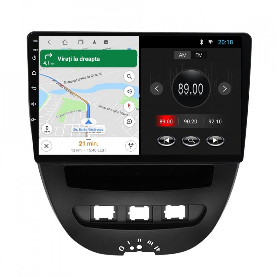 Sistem de operare: Car Android cu meniu în peste 60 de limbi (inclusiv limba română) Procesor: Quad Core ARM Cortex-A7 1.3Ghz Memorie internă: 2GB RAM + 32GB stocare (extensibilă prin 2 sloturi USB de maxim 64GB) Display: Touchscreen 10 inch IPS HD 1280×720, multi-touch, format 16:9, cu margini curbate și tehnologie 2.5D Chipset GPS: Samsung Sirf Star IV cu 48 de canale (antenă GPS inclusă) Conectivitate: Wi-Fi, Bluetooth, 2 x USB, RCA, AUX Plug & Play: Mufă dedicată, navigaţia preia comenzile de pe volanul maşinii şi nu descarcă bateria acesteia Cooler răcire activă: Ventilatorul integrat menține o temperatură optimă, asigurând astfel navigației o durată de viaţă mai mare Audio: 4 x 45W + ieşire subwoofer Radio: FM 87.5 – 108.0 Mhz Dual Zone: Poţi asculta muzică şi folosi aplicaţia preferată de navigare (iGO, Waze, Maps etc.) în acelaşi timp PLUG & PLAY Navigația se potrivește perfect în bord, iar mufa de alimentare este identică cu cea a maşinii. Nu ai nevoie de ramă adaptoare şi nici nu trebuie să modifici instalaţia electrică. Comenzile de pe volan rămân funcţionale, iar navigaţia se va opri când iei contactul şi nu va descărca bateria maşinii. În pachet sunt incluse toate cablurile necesare montării navigaţiei, precum şi cele auxiliare (RCA, USB etc.). UNIVERSUL ANDROID ÎN CONFORTUL MAŞINII TALE Aplicaţiile preferate vin acum pe ecranul navigaţiei tale. Poţi instala orice aplicaţie din magazinul Google Play sau de tip APK: Waze, Google Maps, YouTube, Spotify, Google Chrome, Instagram, Facebook, WhatsApp etc. Fără a mai avea nevoie de telefon, te poţi strecura prin traficul aglomerat folosind Waze sau Google Maps şi în acelaşi timp poţi asculta muzica preferată sau viziona filmele și videoclipurile favorite pe YouTube, Spotify, Apple Music etc. GPS DUAL ZONE Navigaţia dispune de un modul şi o antenă GPS de calitate superioară, care te localizează cu precizie şi te ajută să ajungi la destinaţie în cel mai scurt timp, fără a avea nevoie de telefon. Dual zone: Poţi asculta muzică în timp ce foloseşti aplicaţia preferată de navigare, vocea aplicaţiei suprapunându-se, atunci când este cazul, peste muzică. COMPATIBILĂ CU ORICE TELEFON Deşi navigaţia dispune de propriul sistem de operare Android care funcţionează independent de telefon, la aceasta se poate conecta orice telefon cu Android sau iPhone prin Bluetooth sau Wi-Fi. Poţi folosi cu uşurinţă orice aplicaţie instalată pe telefon fără a o instala şi pe navigaţie şi primeşti toate notificările de pe telefon direct pe ecranul navigaţiei. BLUETOOTH, WI-FI ŞI MIRRORLINK INTEGRATE Spune adio amenzilor pentru folosirea telefonului la volan. Poţi descărca contactele din telefon pe navigaţie şi poţi iniţia şi prelua apeluri direct de pe ecranul navigaţiei, precum şi asculta muzica preferată de pe telefon. Navigaţia se conectează rapid la orice reţea wireless, inclusiv la hotspot-ul telefonului, iar cu ajutorul tehnologiei MirrorLink poţi oglindi imaginea telefonului pe navigaţie. MULTIPLE INTERFEȚE DISPONIBILE Interfața navigației se poate schimba cu ușurință, aceasta având 4 teme preinstalate, astfel încat să se plieze pe stilul și gustul tau. De asemenea, o poți personaliza foarte ușor cu alte teme disponibile în aplicații de tip Car Launcher. Nu trebuie să ştii engleză pentru a putea folosi navigaţia. Poţi afişa meniul în peste 60 de limbi, inclusiv română, engleză, spaniolă sau franceză. SUPORT DVR, CAMERĂ MARȘARIER ȘI SENZORI PARCARE AFTERMARKET Niciodată nu a fost atât de simplu să parchezi. Când schimbătorul ajunge în marșarier, pe ecranul navigației se va afișa automat imaginea video din spatele mașinii, împreună cu liniile de ghidaj. Senzorii de parcare, fiind de asemenea afişaţi pe navigaţie, te vor avertiza atât vizual, cât şi acustic. Înregistrarea video realizată de camera de bord DVR te poate scăpa de amenzi sau alte situaţii neplăcute, fiind martorul tău de încredere în cazul producerii unui eveniment nedorit în trafic. SUPORT INTERFAȚĂ OBDII Un adaptor Bluetooth OBDII este de un real ajutor atunci când o eroare apare în bordul maşinii. Cu ajutorul lui poţi citi, interpreta sau șterge eventualele coduri de eroare şi îţi poţi da seama cu uşurinţă ce nu este în regulă cu maşina ta. În plus, poți afișa pe ecranul navigației informații în timp real despre starea mașinii cu ajutorul unor aplicații dedicate precum Torque sau Car Scanner. NAVIGAȚIE CU ANDROID – SISTEMUL COMPLET DE INFOTAINMENT DIN MAȘINA TA