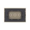 Specificatii: Panou intrerupator triplu cu touch din sticla Livolo, standard Italian, compatibil cu doza modulara de 3 module cu distanta dintre suruburi 85 mm. Brand: Livolo Material Panou: Sticla Crystal termorezistenta Dimensiune: 119 x 78 mm Tip: Intrerupator din sticla cu touch Livolo standard Italian Certificare: CE, RoHS